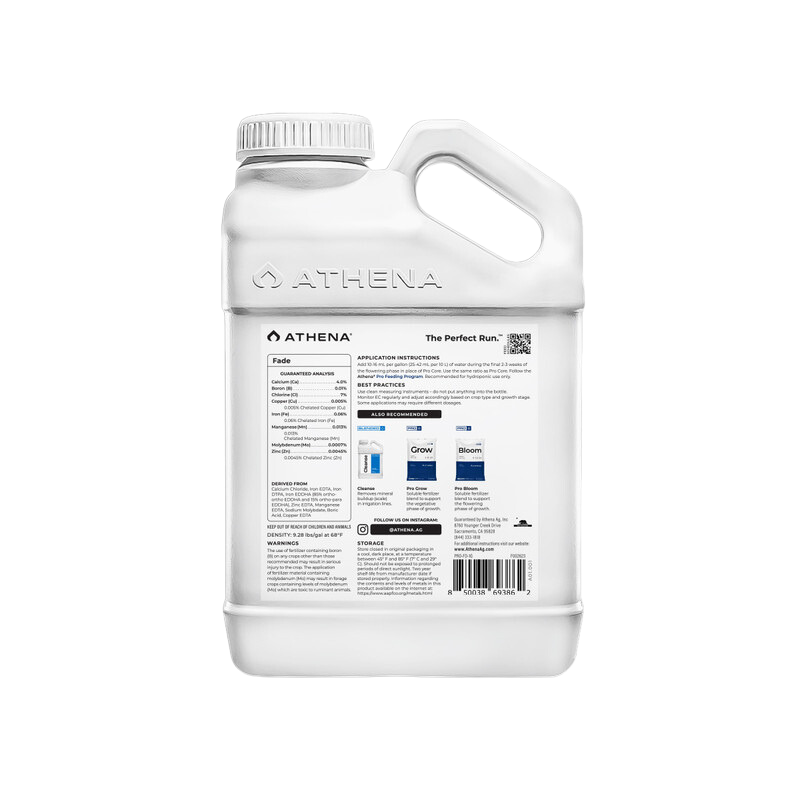 Fade es un tratamiento de acabado sin nitrógeno que proporciona a sus plantas los nutrientes inmóviles que necesitan (calcio y microelementos) para garantizar que no pasen hambre durante la fase crítica de maduración.