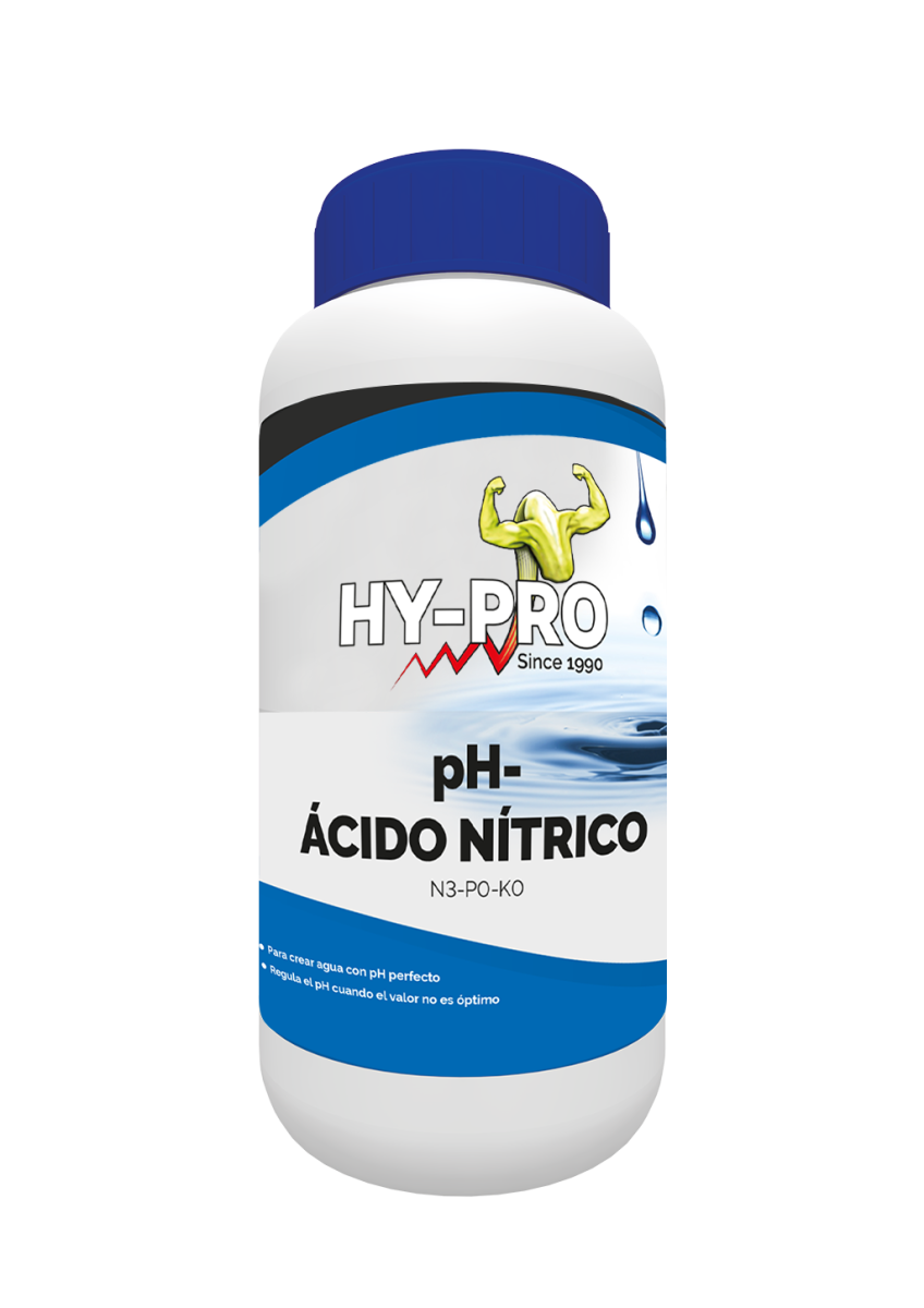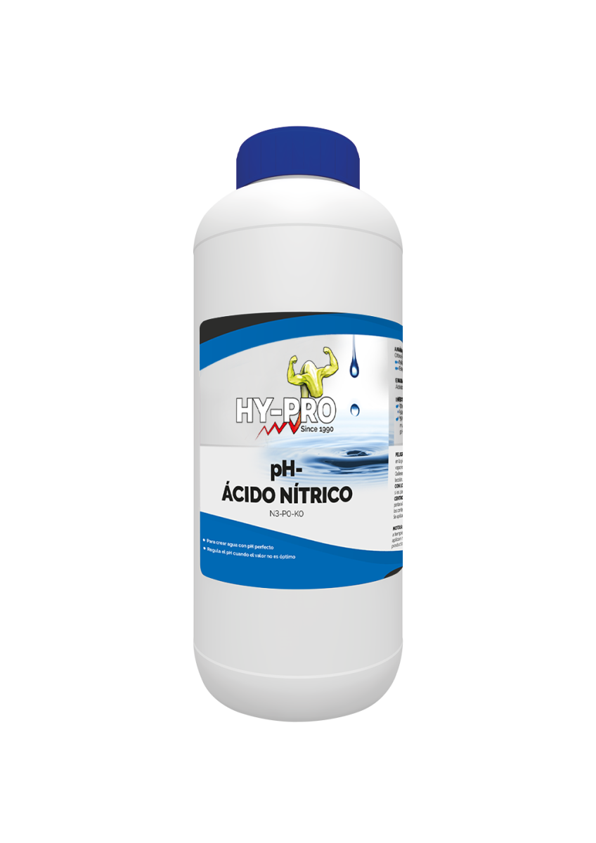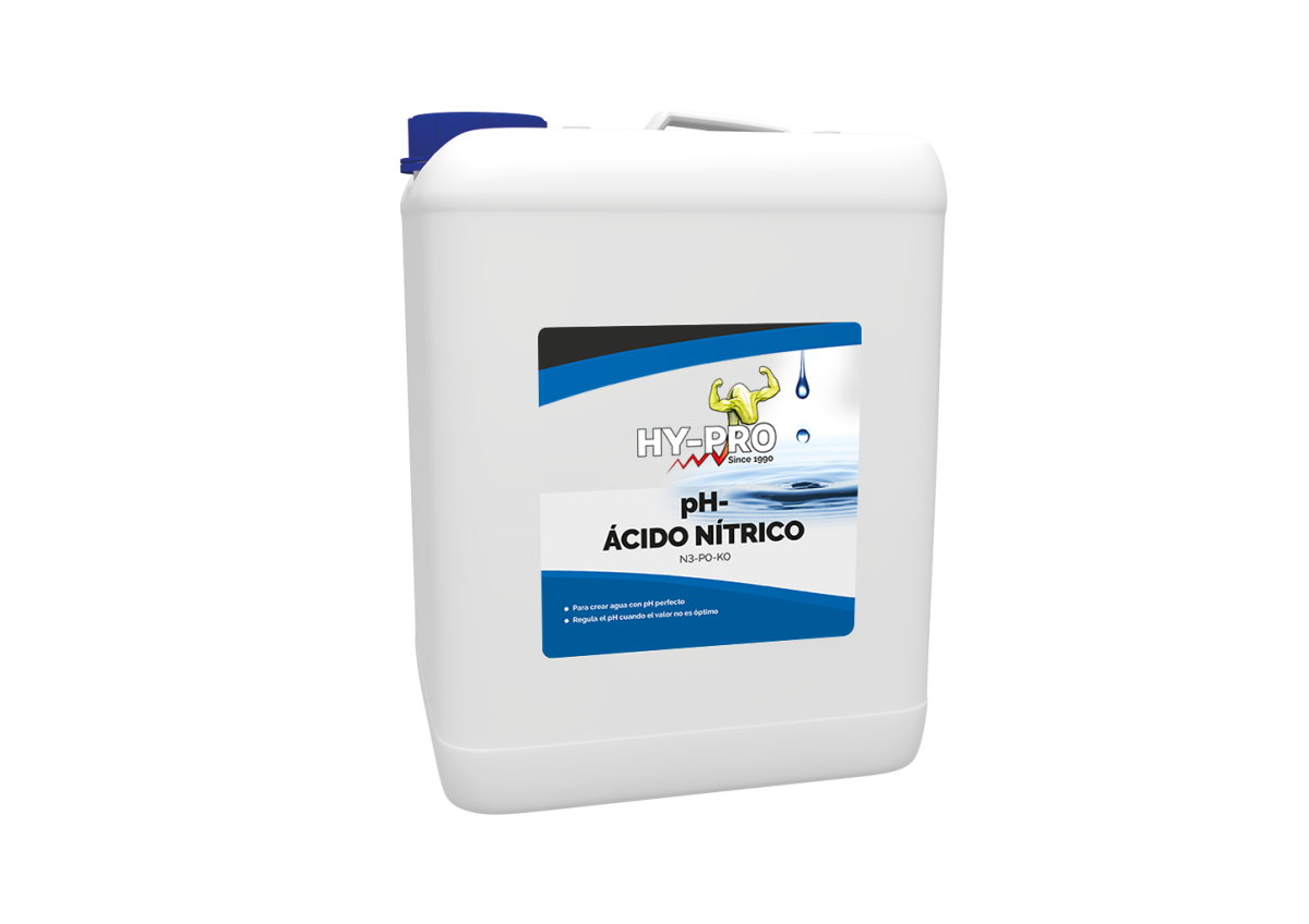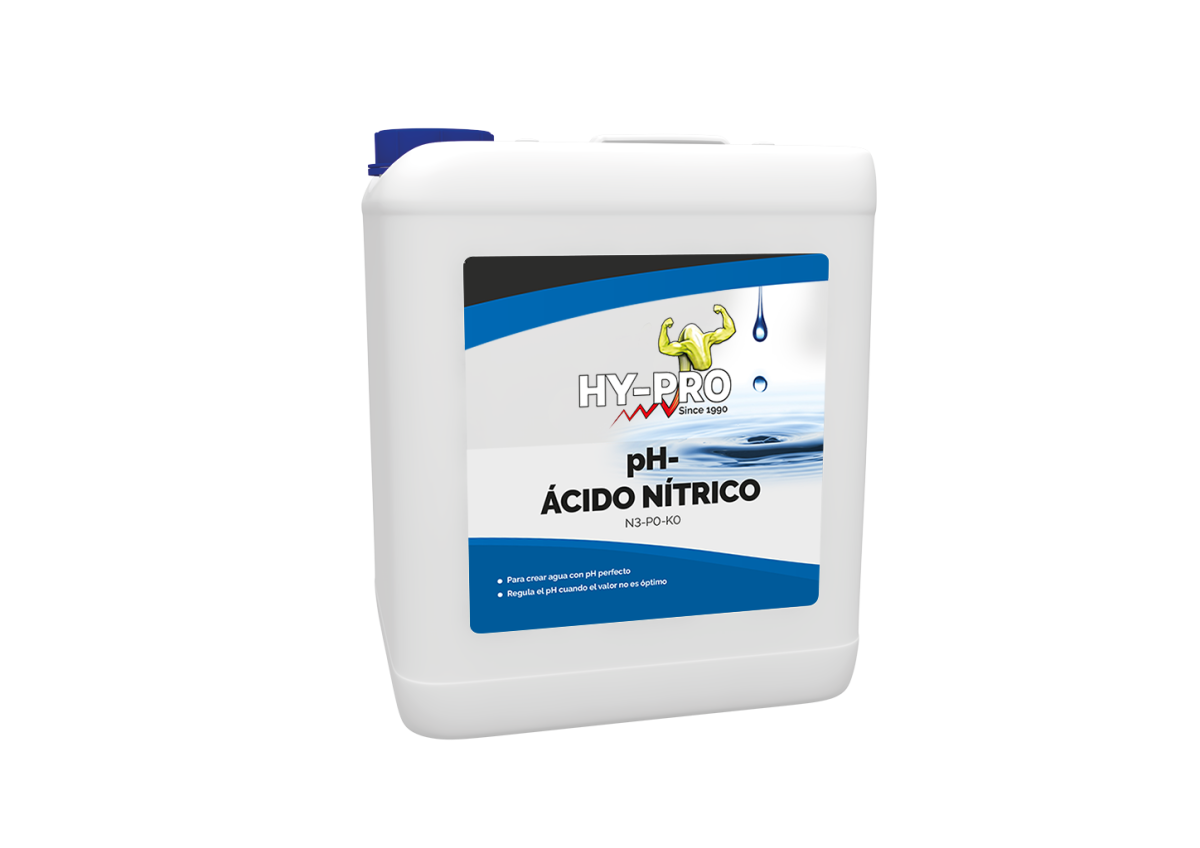 Hy-Pro Nitric Acid PH- te permitirá disminuir el pH cuando sea demasiado alto, buscando mantener siempre un ajuste que suele ser de entre 5.5 Y 6.0.
