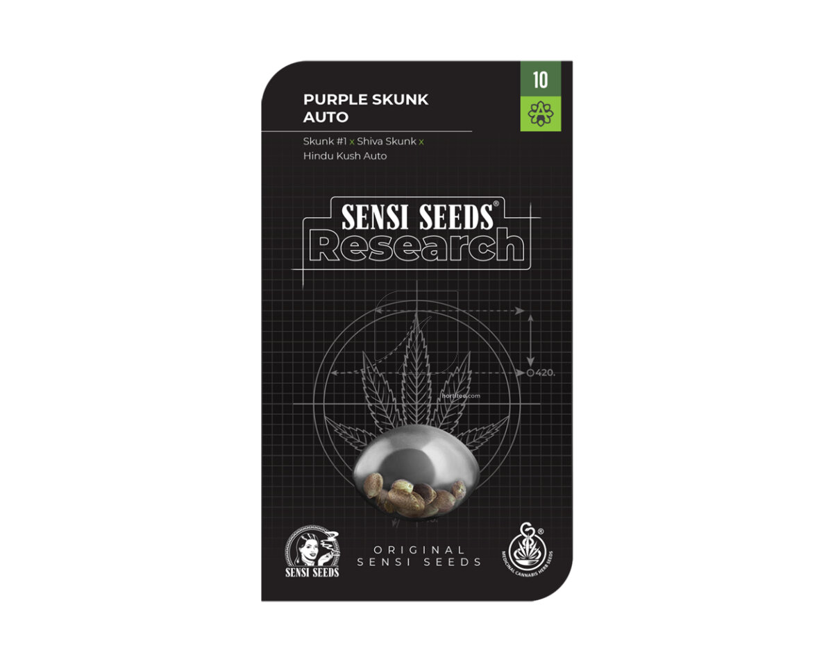 La Purple Skunk Auto presenta sabores terrosos y dulce skunk, con matices especiados.
