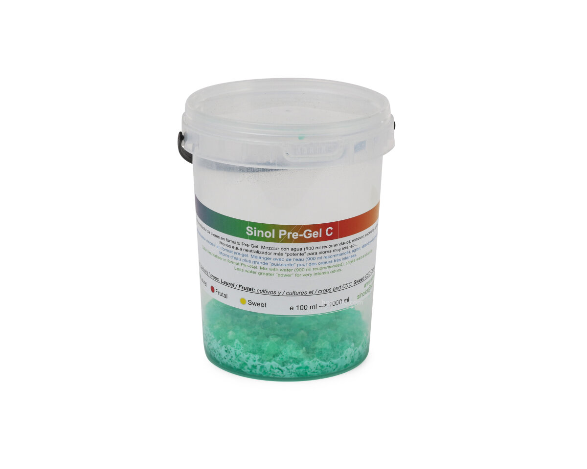 Sinol Pre-Gel C es un neturalizador de olores concentrado. Sinol Líquido se ha mezclado con polímeros y colorante grado alimentario para facilitar la preparación y aplicación.