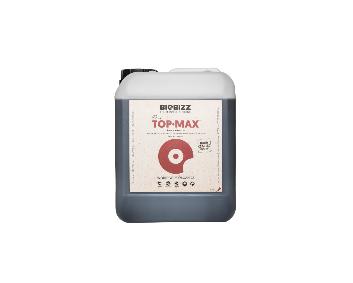 Top·Max™ es un estimulante de la floración, 100 % de origen vegetal, que se encarga de la producción abundante de flores y del desarrollo de cogollos grandes y compactos. Aumenta el contenido de azúcares proporcionando un sabor dulce al producto final. Top·Max™ funciona soltando los minerales, calcio y magnesio de la tierra, para impulsar el metabolismo de la planta aumentando la energía de las células y creando muchas nuevas.